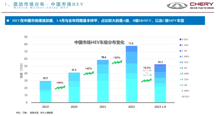 芜湖埃科泰克动力总成有限公司是奇瑞的全资子公司,奇瑞的全部动力总成产品都由埃科泰克提供。2023年10月19日,在第十一届汽车与环境创新论坛暨第十五届全球汽车产业峰会,芜湖埃科泰克动力总成有限公司副总经理周之光表示,自2021年起,中国市场PHEV销量快速增长。而HEV在中国市场增速放缓,1-8月与去年同期基本持平,这不免有PHEV对其的冲击。总体来看,PHEV面临着良好的发展机遇。