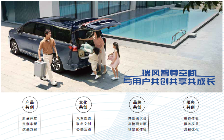 同时,江淮瑞风还建立起瑞风用户共创共享的品牌家园“瑞风智尊空间”,让用户共创形成有效稳定的运营机制,更好地与用户深度联系。