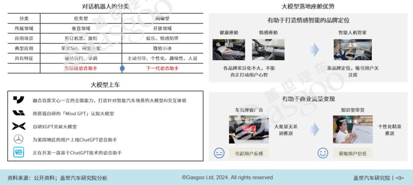 当前车载语音系统底层是未完全成熟的任务型对话系统,尚无法真正实现个性化和情感化的交互能力,而基于大模型的对话机器人可以通过大数据的持续训练,让车载语音助手更加接近真人