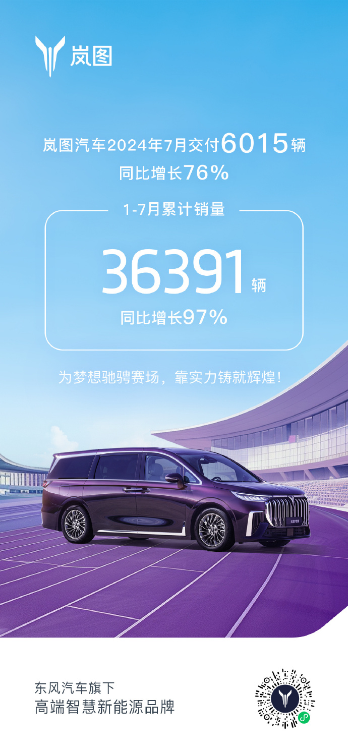 文章来源于互联网:岚图汽车7月交付6015辆,同比增长76%