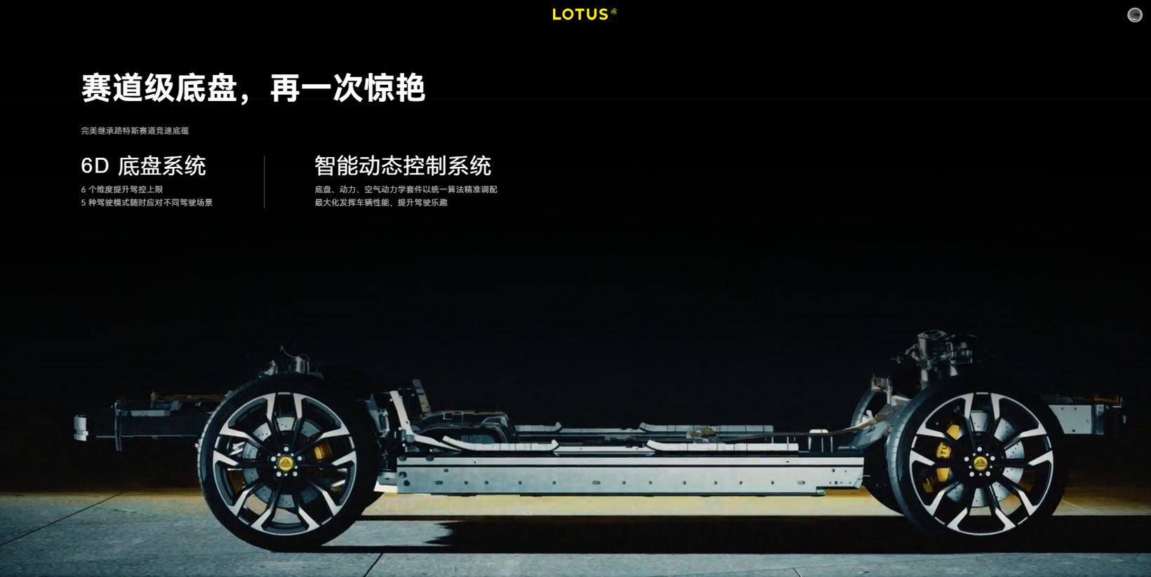 除了加码电气化技术路线外,冯擎峰指出,路特斯还会在智能化方面去提升,如6D底盘的布局。“l用了电池以后车身加重,会让操控难做,能耗增加,安全难做。所以我们要通过智能化的底盘,能够把安全、操控给做得更好”。