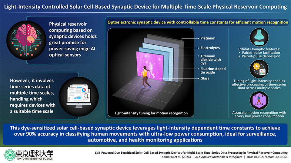 据外媒报道,日本东京理科大学(Tokyo University of Science,TUS)高级工程研究生院应用电子系的一个研究小组取得了突破性进展,该小组由副教授Takashi Ikuno领导,包括Hiroaki Komatsu先生和Norika Hosoda女士,成功制造了一种自供电染料敏化太阳能电池光电光聚合物人体突触,其时间常数可通过输入光强度控制。相关研究已发表于期刊《ACS Applied Materials & Interfaces》。