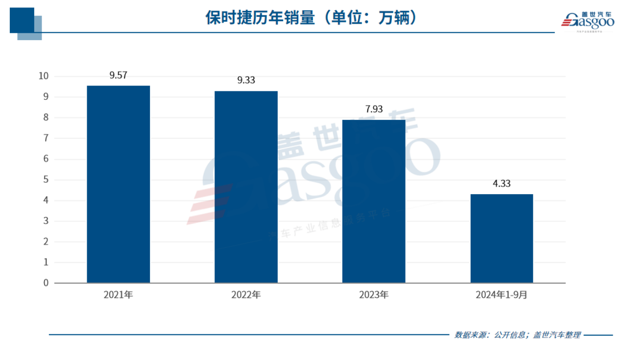 自2022年起,保时捷在中国市场结束了长达二十年的销量持续增长态势,转而步入下滑通道,且下滑趋势日益明显。