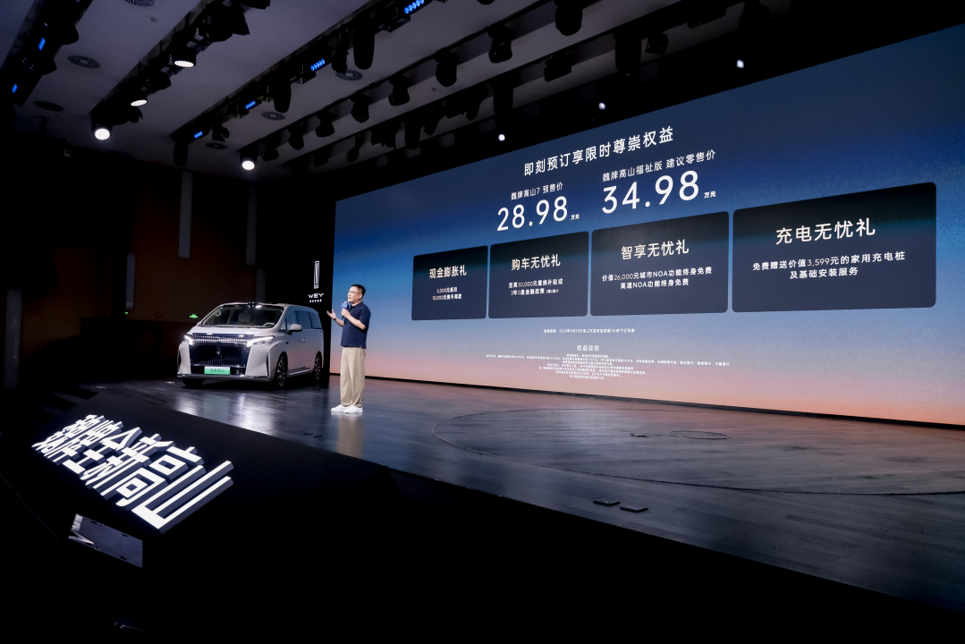 9月10日,魏牌举行高山7 MPV预售发布会,主题为 “一家人的移动大客厅,每个人都有好位置”。高山7聚焦家庭用户出行痛点,预售价格定为28.98万元,定位30万内MPV市场,在灵活、空间、智能、性能和安全五大维度发力,以满足年轻家庭需求。